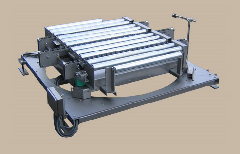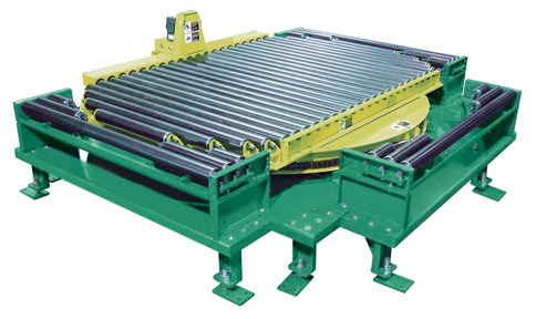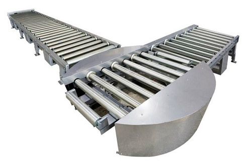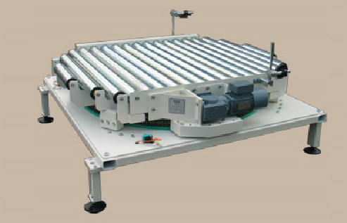 旋轉滾筒輸送機是一種特定的滾筒輸送機,由底座旋轉部分和上部輸送機部分、旋轉軸、傳動馬達、旋轉馬達等幾部分組成,一般用于周轉箱、工裝板的轉彎工位,與其他轉彎滾筒輸送機相比,其不同之處就是不會改變物料的方向且占地面積較小,可原地轉動;輸送較重物品時底部可加裝支撐軸承,承載力可超過2噸;輸送滾筒材質有碳鋼鍍鋅、不銹鋼兩種,標準寬度有300、400、500、600、800、1200mm等,旋轉角度可通過增加緩沖器及機械阻擋控制,停車準確,避免了累積誤差;