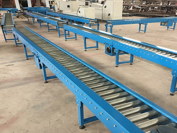 積放滾筒輸送機通過有序的“積”和“放”,可以實現貨物在指定輸送段上的停留和暫存,來滿足所需要的傳輸節拍。由機架、滾筒、鏈條、鏈輪、傳動軸、支腿、馬達等幾部分組成,可用于紙箱、塑料周轉筐、工裝板等箱式元件的積放式存儲;通過調節滾筒端面螺栓來改變筒體與鏈輪的摩擦力,從而適應不同物料的重量,傳動方式不同可分為單鏈輪傳動滾筒、雙鏈輪傳動滾筒、同步帶傳動滾筒、多楔帶傳動滾筒、O帶傳動滾筒等;輸送滾筒材質有碳鋼鍍鋅、不銹鋼、鋁質、塑料等,輸送滾筒標準寬度有300、400、500、600、800、1200mm,廣泛應用于食品、飲料、電子、日化等行業;