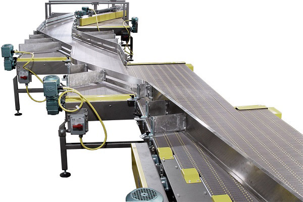 無壓力鏈板輸送機解決了中、高速瓶裝灌裝線或者空瓶輸送系統中由多列輸瓶變單列輸瓶時擠瓶、卡瓶、倒瓶、破瓶、噪聲大、運行不穩定等問題,它是由一段多列速度不等的三段鏈板輸送機組成,長約需要根據場地設計,用特別設計的傳動系統將過渡段的速度形成差速,利用速度差將瓶罐由多列逐漸轉變成單列輸送,主要運用在瓶罐類產品的平面輸送環節,滿足灌裝、貼標等環節的輸送的要求,廣泛應用于飲料、啤酒、罐頭、制藥、保健品、汽車配件等行業;輸送鏈板可選用塑料平頂鏈或不銹鋼鏈板,可增加潤滑結構,滿足22400-66000瓶的生產速度;
