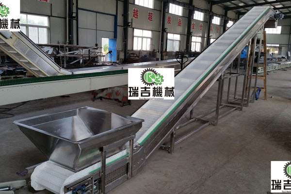 網(wǎng)帶式爬坡輸送機(jī)適用于樓層或高差間的貨物的連續(xù)輸送。傾斜角度小(≤30°)的爬坡網(wǎng)帶輸送機(jī),如果貨物底面的摩察力足夠大,可能采用表面有凸點(diǎn)的防滑網(wǎng)帶;大傾角爬坡網(wǎng)帶機(jī)需要在網(wǎng)帶上加擋板或擋邊。從控制角度講,為了防止停機(jī)時(shí)過(guò)重的貨物在重力作用下逆行,驅(qū)動(dòng)電機(jī)需要設(shè)計(jì)有剎車功能。爬坡網(wǎng)帶輸送機(jī)是在網(wǎng)帶上加裝檔條、治具、裙邊(擋板)等方式從而使物體能在較大的角度上作提升輸送。具有效率高、輸送快、噪音低、不間斷等特點(diǎn)。特別適合小物料的輸送,如食品、注塑件、粉末以及各種零件行業(yè)。產(chǎn)品說(shuō)明:爬坡網(wǎng)帶輸送線用于上下樓層、斜坡地形、天橋等具有高差的平面之間的物品輸送。在某些情況下可以代替升降機(jī)使用。斜坡網(wǎng)帶輸送線在輸送顆粒狀物品時(shí)為防止物品因重力沿著皮帶滾落,每隔一段距離可以加一塊擋板,以方便上料需要。