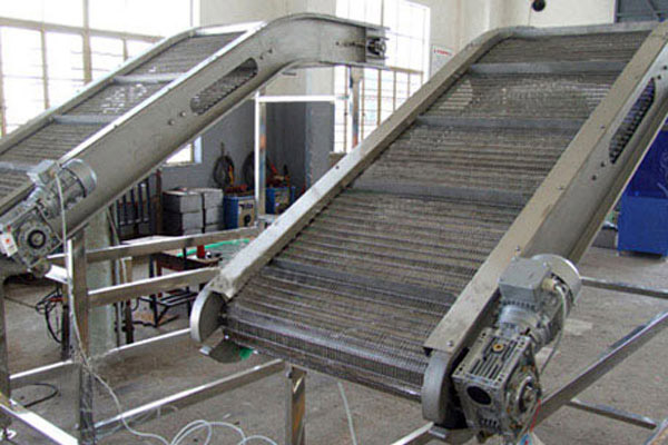 網(wǎng)帶式爬坡輸送機(jī)適用于樓層或高差間的貨物的連續(xù)輸送。傾斜角度小(≤30°)的爬坡網(wǎng)帶輸送機(jī),如果貨物底面的摩察力足夠大,可能采用表面有凸點(diǎn)的防滑網(wǎng)帶;大傾角爬坡網(wǎng)帶機(jī)需要在網(wǎng)帶上加擋板或擋邊。...