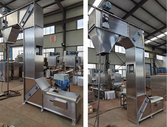 斗式垂直提升機通過將料斗安裝在兩側的鏈條上,運行在封閉的殼體內部,是一款可以廣泛應用于顆粒、粉末、短條狀、小塊狀物料的連續式垂直提升機,按照進出料口的位置可分為Z型、C型、T型、E型等多種形式,全部可滿足多點進出料需求,料斗材質有PP塑料、尼龍、不銹鋼、碳鋼等四種材質,容積有1L、2L、2.5L、3L、8L五種可選,提升量從0.1-18立方/小時可選,根據不同的物料特性,結構也不同,結合我司十多年的行業經驗,擁有多行業成功案例,廣泛的應用于食品、制藥、化工等行業;