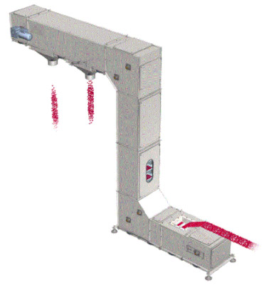 斗式Z型提升機是我司設計制作的斗式提升機系列產品中的一種,根據進、出料口位置的不同而型似字母Z字得名;設備采用封閉式結構,避免了跑冒滴漏的生產缺陷,通過在兩側閉環鏈條上安裝料斗,使得料斗能夠在任意位置隨意設定旋轉位置;可以在任意位置滿足多點卸料的要求,既可以提升顆粒及小塊狀物料,也可以提升含粉量低于25%的混合型物料,提升高度可以達到20米,提升量15立方/小時;新款Z型斗式提升機料斗采用了較老款料斗更加柔性化的設計,全程超高分子導軌及鏈條摩擦塊,在提升高度較高時配備了逆止裝置及電子檢測裝置、斷鏈保護裝置、鏈條自動張緊裝置,使得設備性能可靠性得到了提升;鏈條采用了具有較高強度的輥子鏈,在料斗的尺寸上延續了我們的PP塑料料斗的特點,料斗容積有3L和8L可選;我們可以結合腐蝕、高溫等要求,可非標定制碳鋼、不銹鋼等金屬料斗,目前我司生產的Z型斗式提升機在化工、塑料、糧食、寵物食品、膨化食品、休閑食品、再生資源、五金、化工等行業得到了廣泛的應用;