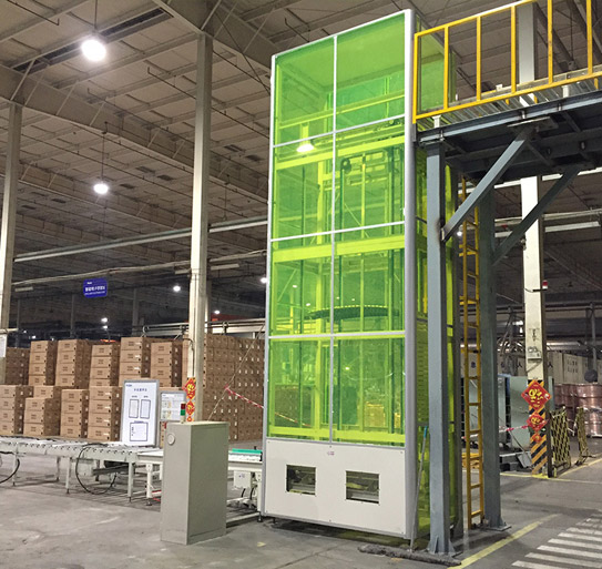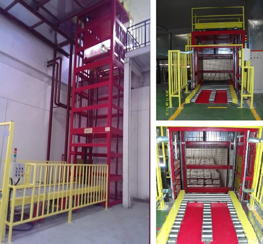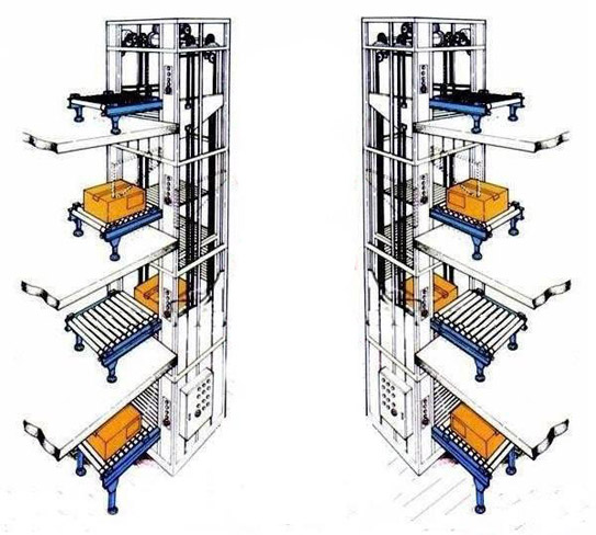 連續式托盤Z型提升機的叫法主要是根據輸送形式為垂直提升而得名,又稱為:連續式托盤提升機,托盤式垂直提升機,由設備框架、傳動軸、鏈輪、傳動鏈條及組合式托盤、承載鏈條等組成,全程采用該分子耐磨導軌導向,具有占地面積小、提升速度快、噪音低、安全等特點;垂直提升機主要應用于紙箱、塑料周轉箱、油桶、棧板等固態元件的垂直提升輸送;按照進料口出料口的方向分為Z型垂直提升機和C型垂直提升機兩種。 Z型出入口分別位于設備的兩邊,C型垂直提升機的出入口位于同一側;Z型相比較C型垂直提升機來講,提升量相對會大一些,Z型的提升速度可達20件/分鐘,C型可達10件/分鐘,具體速度需要根據物體尺寸確認;提升高度可達15米,單件物品的提升重量可達150KG;