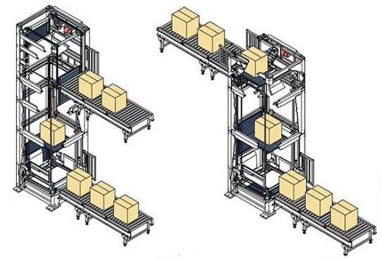 往復式Z型提升機又稱為Z型往復式升降機或Z型托盤貨物提升機,是由鏈條帶動,通過變頻調速控制電機,便提升轎廂上下往復運動.提升轎廂上配有傳動機構,以便被輸送物自動進入提升機的提升轎廂上。利用升降轎廂的上下往復運動來實現物料的垂直輸送,增加配重,減少沖擊的同時有效降低了能耗;采用PLC+觸摸屏(選配)程序控制,可存儲多種參數,直接調用,無需重新設定;可自由設置初始到達位置及平層位置;升降速度:<60m/min(鏈條帶動方式);升降行程:0-20m ;輸送節拍:>15s/件(按行程而定);自動化操作,并配置斷鏈檢測及防墜落等安全裝置,從而確保人身、貨物安全;升降轎廂的上下行程均可輸送物料,在升降轎廂的一個循環過程中可使物料同時雙方向流動,縮短了貨物進出時間;轎廂上可裝上不同種類的輸送設備,并與出入口輸送設備相配合,使輸送過程實現自動化,從而提高了生產效率;形式多樣布置靈活,物料可以從各個方向上進出提升機,便于生產設備布局;輸送物料種類:包裝箱、托盤、卡板;可根據客戶要求設計、制造 ;具有全自動控制、提升轎廂定位準確等特點。適用于托盤貨物、噸桶、大件紙箱、噸包等貨物在樓層間的穿梭輸送;